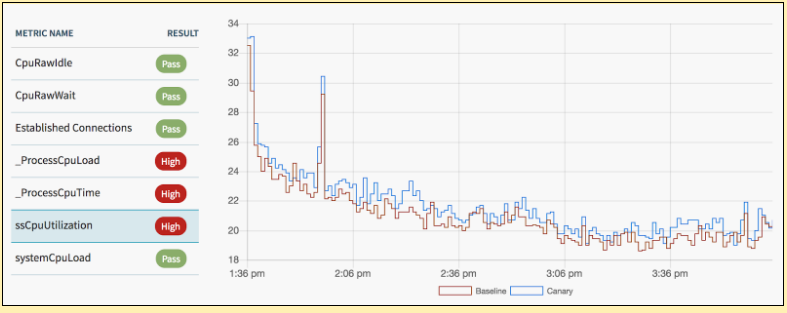 After each metric is classified, a final score is computed which represents how similar the canary is to the baseline. A metric group’s score is calculated as the ratio of “Pass” metrics out of the total number of metrics.