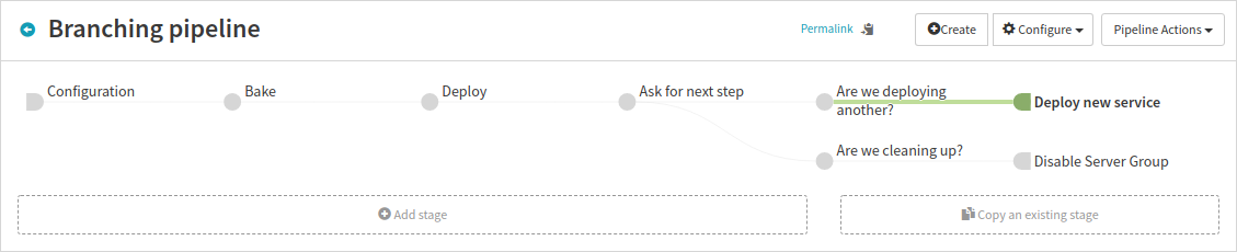 - Add the other stages for this pipeline branch (for example, a second deploy stage)