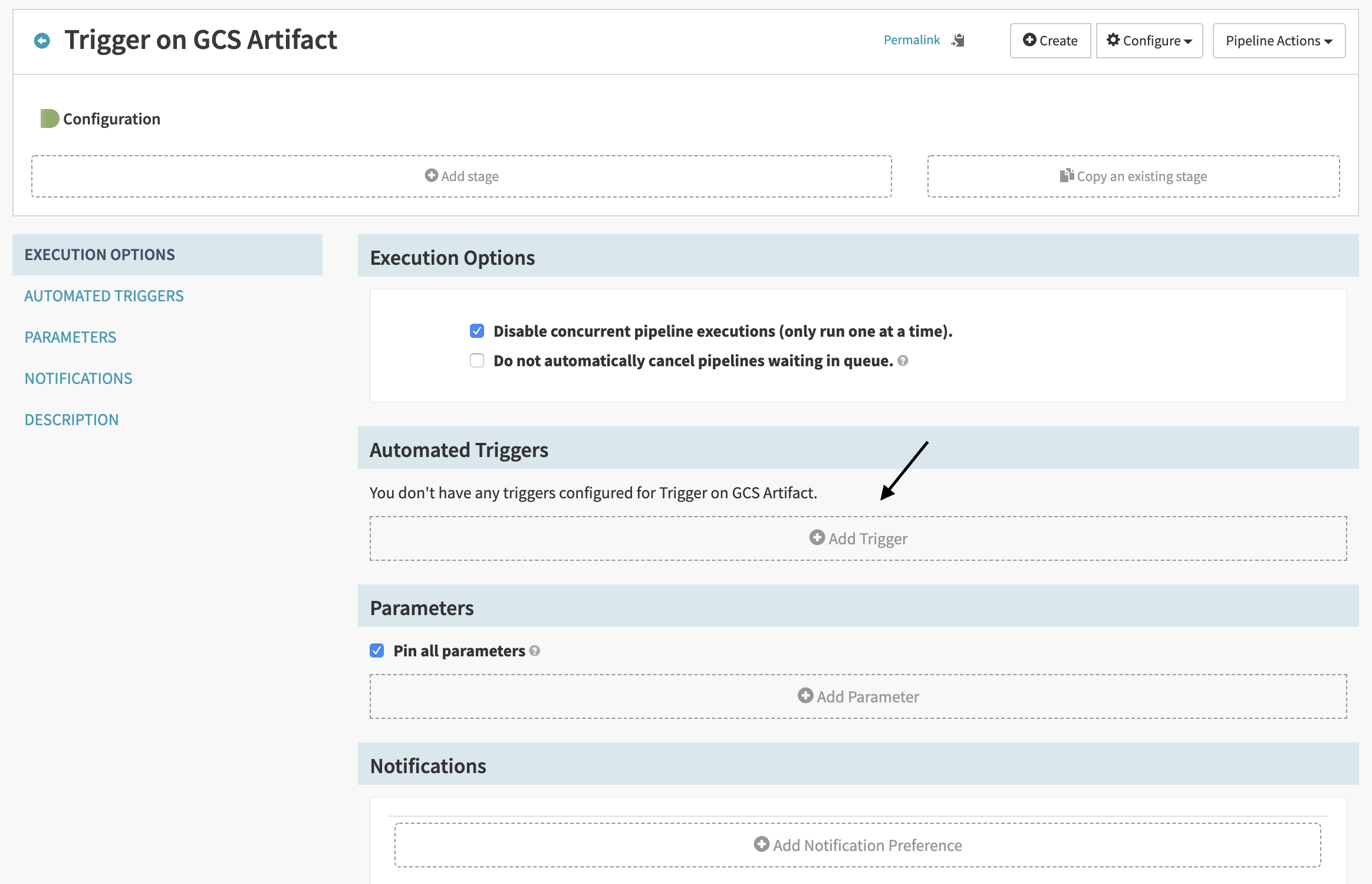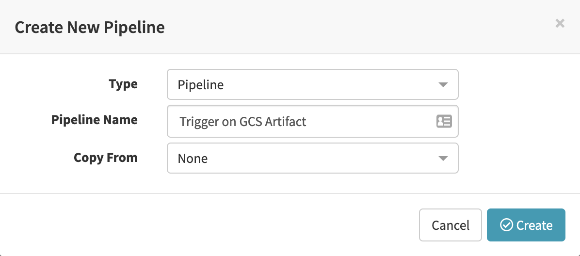We will need either an existing or a new pipeline that we want to be triggered on changes to GCS artifacts. If you do not have a pipeline, create one as shown below.