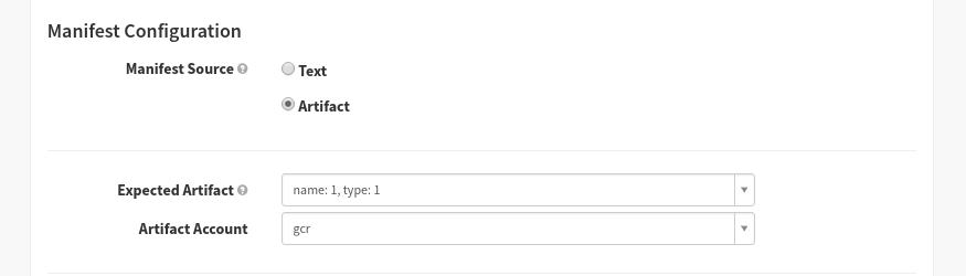 If your stage emits artifacts (such as a “Deploy (Manifest)” stage) into the pipeline context, you can match against these artifacts for downstream stages to consume.