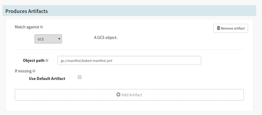 Stages can be configured to ‘Produce’ artifacts if they expose the following Stage configuration: