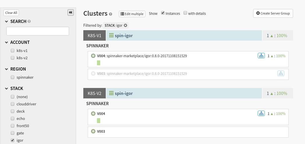 The V2 provider encourages you to leverage the Kubernetes native deployment orchestration (e.g. Deployments ) instead of the Spinnaker blue/green (red/black), where possible.